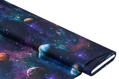 Trauen Sie Ihren Augen! Mit diesem Baumwollstoff-Digitaldruck "Galaxy Ria" sind Sie der Realität täuschend nah. Der Baumwollstoff mit beeindruckendem Sternen- und Planeten-Print lässt sich verwenden für Deko aller Art – vom Kissenbezug über Tischwäsche bis hin zur großflächigen Wandbespannung. Die fein gewebte Baumwollware ist weich im Griff und lässt sich ganz nach Ihren Wünschen drapieren. Jetzt bestellen und auf Ihr Paket freuen!