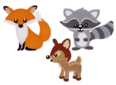 buttinette Applikationen "Waldtiere", zum Aufbügeln und/oder Aufnähen, Größe: 2,8–6 cm, Inhalt: 3 Stück. Material: 100 % Polyester.
