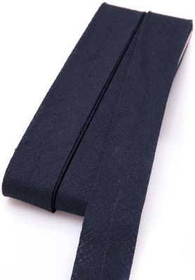 buttinette Baumwoll-Schrägband, Farbe: nachtblau, Breite: 2 cm, von 4 cm auf 2 cm vorgefalzt, Länge: 5 m. Material: 100 % Baumwolle.