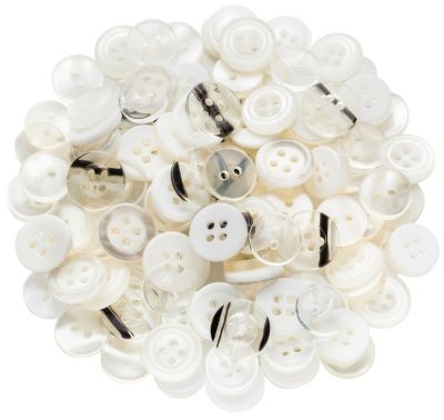 buttinette-Hemd- und Blusenknöpfe aus Kunststoff. Diese Knöpfe sind ideal geeignet zum Aufpeppen Ihrer selbstkreierten oder gekauften Kleidung. Das Vorteilspaket enthält von jeder Knopfvariante die ausreichende Menge für ein Kleidungsstück. Größe: 10–12 mm Ø, Farbe: weiß, transparent, Inhalt: 200 Stück, je nach Anfall.