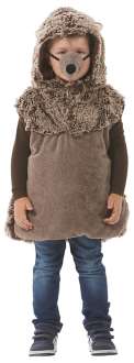 - Besonderheiten: ärmellose Weste mit angenähter Kapuze und Ohren, kuschelweiche Langhaarplüsch-Details im Igel-Look, wattierter Bauchteil
