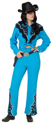 Cowboys aufgepasst, hier kommen die Cowgirls! Im Wilden Westen haben nicht nur die Männer die Hosen an. Mit diesem Cowgirl-Kostüm in auffälligem Blau ziehen Sie alle Blicke auf sich. In dem Zweiteiler bestehend aus Hemd und Hose sind Sie bestens gerüstet, den Männern zu zeigen, wo es lang geht. Egal, ob beim Rodeo, in der Prärie oder auf der Tanzfläche – der Cowgirl-Look ist absolut zeitlos und immer ein tolles Kostüm. Cowgirls an die Macht!