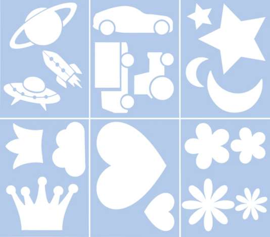 Schablonen sind einfach in der Anwendung - und das Ergebnis sieht immer professionell aus! Mit diesen hübschen Schablonen stehen Ihnen viele Möglichkeiten offen: Gestalten Sie damit die Wand des Kinderzimmers oder machen sie aus Möbeln Unikate, verzieren Sie Holzkisten, bemalen Sie T-Shirts oder Baumwolltaschen uvm. Auch beim Nähen kommen die Schablonen zum Einsatz: Ganz einfach lassen sich damit Applikationen herstellen, mit denen Sie Kissen, Patchworkdecken, Taschen, Kleidung und vieles mehr individuell gestalten können.