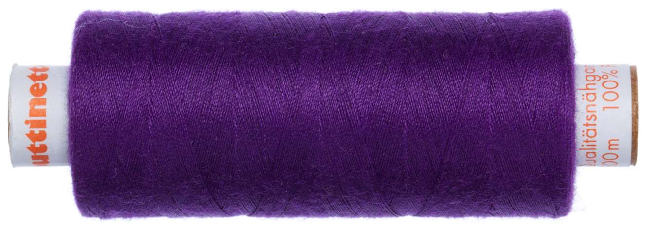 buttinette Universal-Nähgarn, Farbe: lila, Fadenstärke 100, Nadelstärke: 60 - 100, 500 m pro Spule. Material: 100 % Polyester.