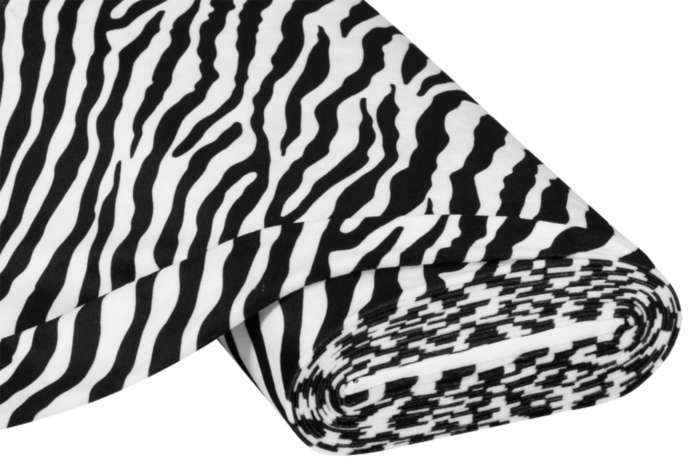 Authentisches Fellimitat "Zebra" für verschiedene Näh-Ideen im Kostüm- und Dekobereich, z. B. ausgefallene Kissenhüllen, Decken, Overalls etc., mit glatter Rückseite, Breite: 150 cm, Gewicht: ca. 200 g/m². Material: 100 % Polyester.