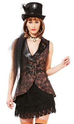 Sie lieben den Steampunk-Stil? Dann wird Ihnen diese Frack-Weste im Steampunk-Look sicherlich auch zusagen! Sie kann entweder über Ihrem jeweiligen Steampunk-Kostüm getragen werden oder Sie kombinieren dazu einfach ein schwarzes Oberteil sowie einen schwarzen Rock oder eine Hose und schon ist Ihr selbstkreierter Steampunk-Look fertig. Optisch macht der Steampunk-Frack in jedem Fall einiges her!