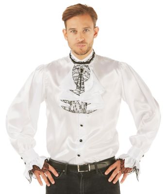 Was haben Graf Dracula, Casanova oder Lord Henry gemeinsam? Allen drei würde dieses schicke weiße Herrenhemd ausgezeichnet zu Gesicht stehen! Also warum dann nicht auch Ihnen? Ob zum Vampir-, Barock-, Venezia- oder Graf-Kostüm – das Hemd mit Stehkragen und das Spitzen-Jabot lassen sich wunderbar zu den unterschiedlichsten Kostümideen kombinieren. Wir sind uns sicher: Dieses edle Duo aus Hemd und Jabot werden Sie sicherlich nicht nur eine Saison lang tragen!