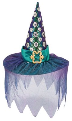 Hexenhut "Pfau" – modebewusste Hexen komplettieren ihr Karnevals- oder Halloween-Kostüm mit diesem eleganten Hexenhut!