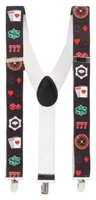 Sie wollen ein echter Casino-Showstar sein? Dann kommen Sie um diese auffälligen Hosenträger mit Poker-Motiven nicht herum. Sie sind ein echter Hingucker und werten alle Kostümideen rund um Casino, Las Vegas, Show und Entertainment gekonnt auf. Dank der praktischen Clips lassen sich die Poker-Hosenträger schnell und sicher befestigen, während das elastische Material für angenehmen Tragekomfort sorgt. Lassen Sie die Show oder das Spiel beginnen!