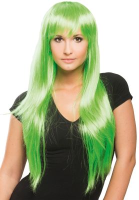 Langhaarperücke mit Pony: Perücke aufsetzen und ab geht die Party! Mit dieser grünen Perücke stehen Sie überall sofort im Mittelpunkt!