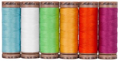 Mettler Silk Finish Cotton "Frühling", empfohlene Nadelstärke: 80 - 90, Fadenstärke: 40, Inhalt: 6 Spulen à 150 m. Material: 100 % Baumwolle.