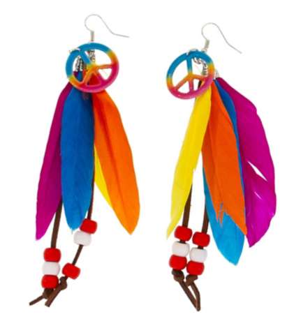 Ohrhänger "Hippie-Time" – bunt, bunter, Hippie-Look! Ergänzen Sie Ihr kunterbuntes Hippie-Kostüm mit diesen ebenfalls sehr farbenfrohen Ohrhängern!