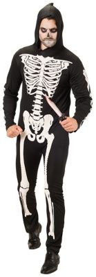 - Besonderheiten: Overall mit Kapuze und weißem Skelett-Aufdruck