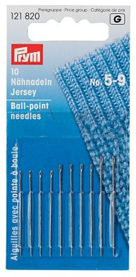 Prym Jersey-Nähnadeln, No. 5 – 9, Länge: 35 – 40 mm, Stärke: 0,6 – 0,8 mm, Inhalt: 10 Stück.