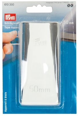 Prym Schrägbandformer "breit", zum Falten von Schrägbändern in der Breite 50 mm, Größe: 10 x 5 cm, inkl. Gebrauchsanleitung. Material: Metall.