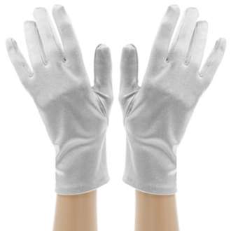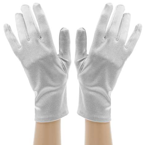 Zum eleganten Abendkleid, ausgeflippten 50er Jahre Kleid, verspielten Charlestonkleid oder zum venezianischen Barock-Kostüm – kurze Satinhandschuhe verleihen Ihrem Outfit einen noblen Touch: Das glänzende Silber der Satinhandschuhe ist ein echter Hingucker, ohne dabei zu sehr in den Vordergrund zu treten. Probieren Sie es selbst aus, Sie werden von den kurzen Satinhandschuhen begeistert sein und sie gerne zu vielerlei Kostümen tragen!