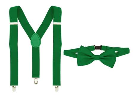Set Hosenträger & Fliege – mit Hosenträger und Schleife in kräftigem Grün werten Sie Ihr Faschings- oder Mottoparty-Outfit ungemein auf!