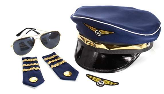 - Details: Mütze größenverstellbar durch Kunststoff-Verschluss, Epauletten und Fliegerabzeichen mit Sicherheitsnadeln zu befestigen