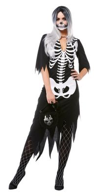 Gruselfaktor? 100 Prozent! Dieses Skelett-Kleid ist für Halloween geradezu prädestiniert. Mit dem großen, auffälligen Skelettaufdruck sieht es furchterregend aus, wirkt aber gleichzeitig absolut sexy und feminin. Jagen Sie den Menschen einen kalten Schauder über den Rücken und sorgen Sie mit dem Skelett-Kostüm für Furore. Noch ein Tipp: Mit ein wenig Schminke wirkt das Kostüm Skelett gleich noch schauderhafter – so kann Halloween kommen.