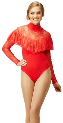 Body aus roter Spitze – mit dem Langarm-Spitzenbody mit Volant machen Sie nicht nur als Spanierin oder Flamenco-Tänzerin eine gute Figur!