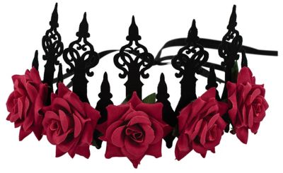 Die filigranen Zacken dieser opulenten Krone erinnern an die Spitzen eines Friedhofzauns. Bestückt mit blutroten Rosen schafft es die Krone Grusel-Faktor und Schönheit gekonnt zu vereinen – das perfekte Accessoire für Ihr Día-de-los-Muertos-Kostüm. Aber auch Skelett, Vampir und andere Grusel-Gestalten sehen in dieser Krone zu Halloween und Fasching umwerfend aus – einfach zum Sterben schön!