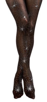 • Besonderheiten: Strumpfhose mit silberfarbenem Spinnen- und Spinnenwebmotiv