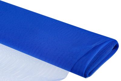Tüll mit flammhemmender Ausrüstung, Farbe: royalblau, Waben: 1,5 mm Ø, Breite: 145 cm, Gewicht: ca. 20 g/m². Material: 100 % Polyamid.